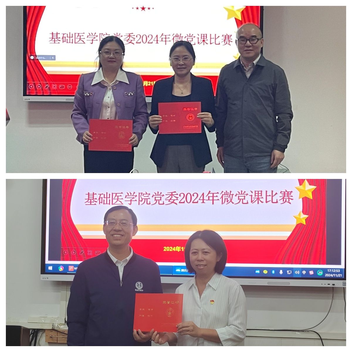 经过评委现场评审,陈锐同志获一等奖,徐明锋和邓莉同志获二等奖,王燕、李彬彬、吴天秀三位同志获三等奖,其余获优秀奖。学院领导为获奖选手颁奖。