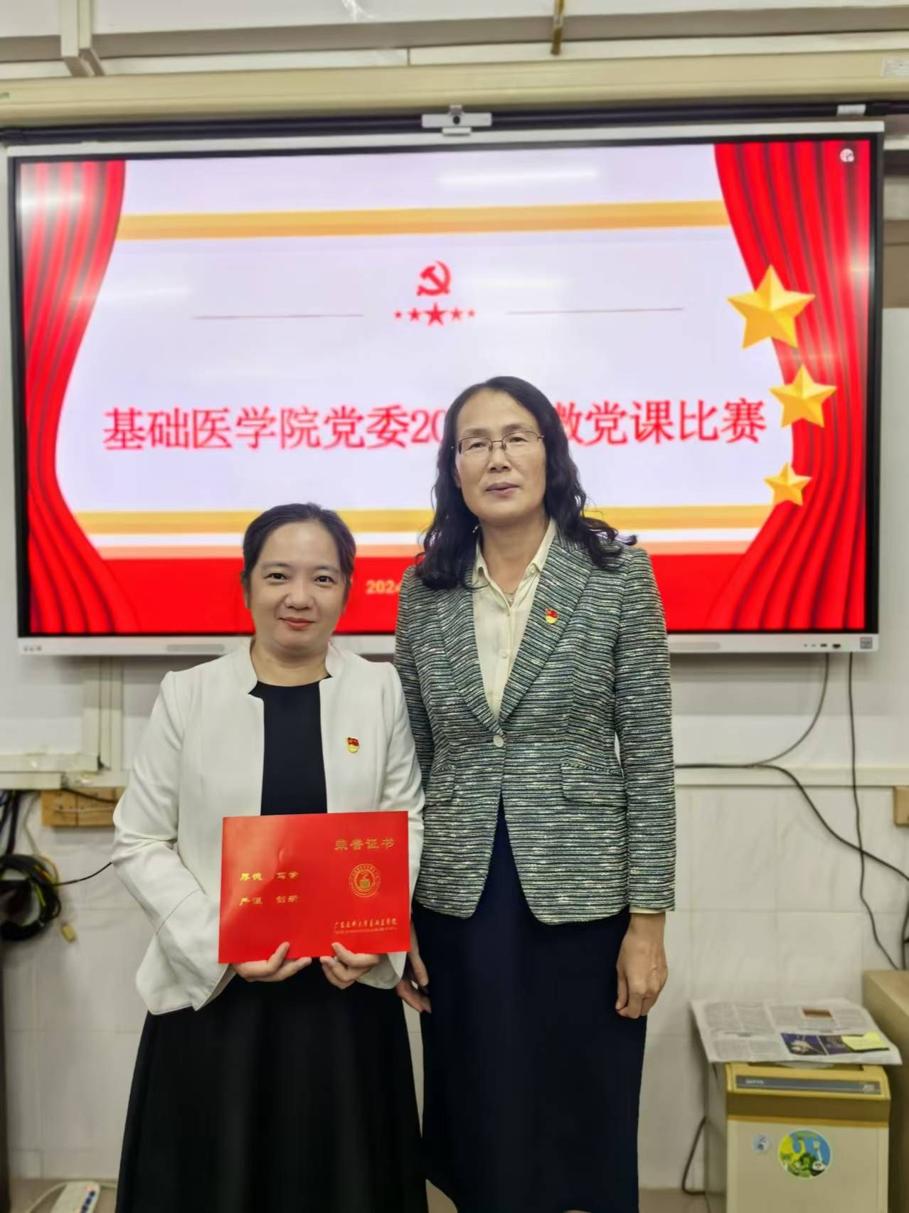 最后,学院党委冯明英书记进行总结讲话。她认为,今天举办微党课比赛是一种很好的学习教育方式,希望各位党员同志要持之以恒加强理论武装,坚持以习近平新时代中国特色社会主义思想为指导,深入学习贯彻党的二十大、二十届二中、三中全会精神,深入学习习近平总书记重要讲话重要指示精神和全国教育大会精神,将学习教育与“三会一课”、组织生活会、主题党日活动等紧密结合,坚持逐章逐条学、联系实际学、全面系统学、心无旁骛学,边学习、边工作、边深化,确保各项学习任务落到实处,把学习成果转化为实际行动,在实践中充分发挥党支部战斗堡垒和党员先锋模范作用,共同推进学院事业发展,助力学校高质量发展贡献“基础”力量。