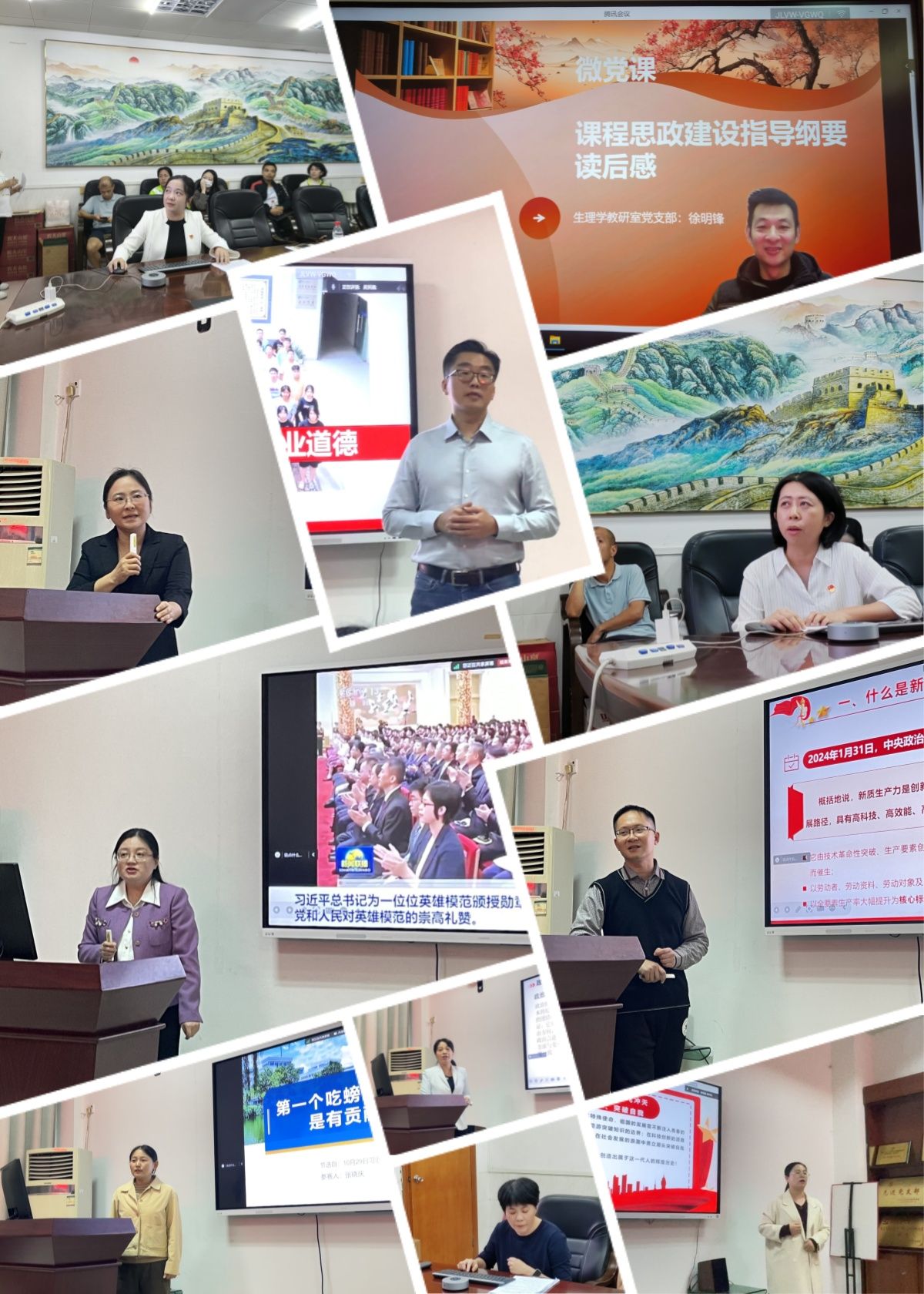 短短8分钟的微党课,来自教师党支部的11位选手们采用PPT、音视频等形式,有的述说了党的二十届三中全会对于教育工作的指导意义,有的致敬英雄楷模,有的弘扬教育家精神,有的谈到了如何将党纪学习教育融入对学生的职业道德教育中......为现场党员们呈现了一场富有感染力的视听盛宴。