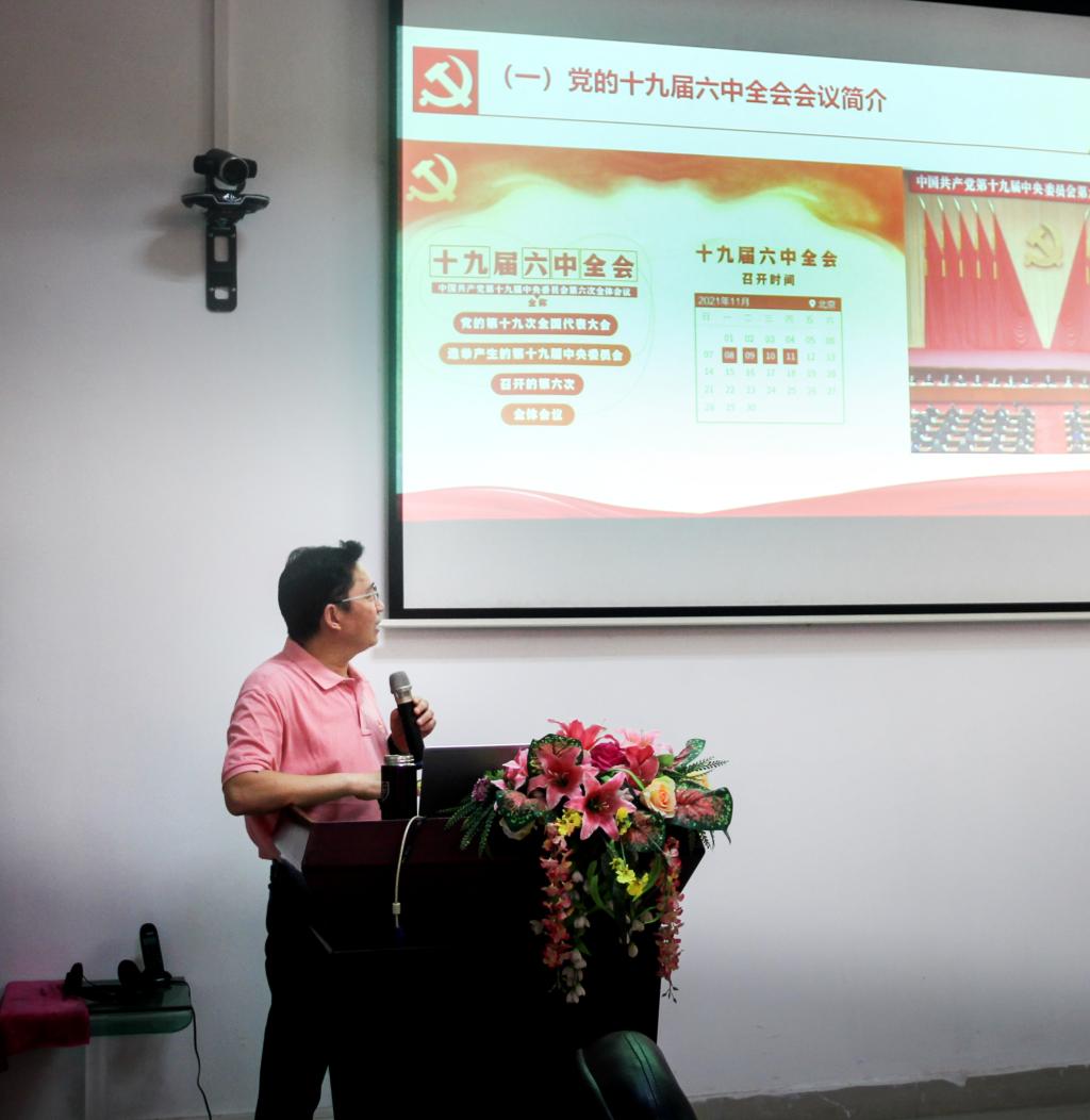 学院何志巍院长在学习会上以《在新的赶考路上创造新的辉煌》为题,结合《中共中央关于党的百年奋斗重大成就和历史经验的决议》,从会议召开背景、主要内容、重要意义等方面作辅导报告。他指出,要紧密结合工作实际开展学习,引导全体师生把思想和行动统一到党的十九届六中全会精神上来,提高政治站位、增强政治自觉,把学习成效体现到推动学院各项事业发展上。