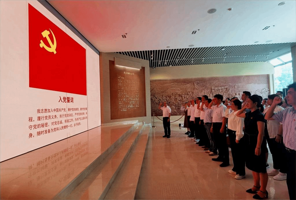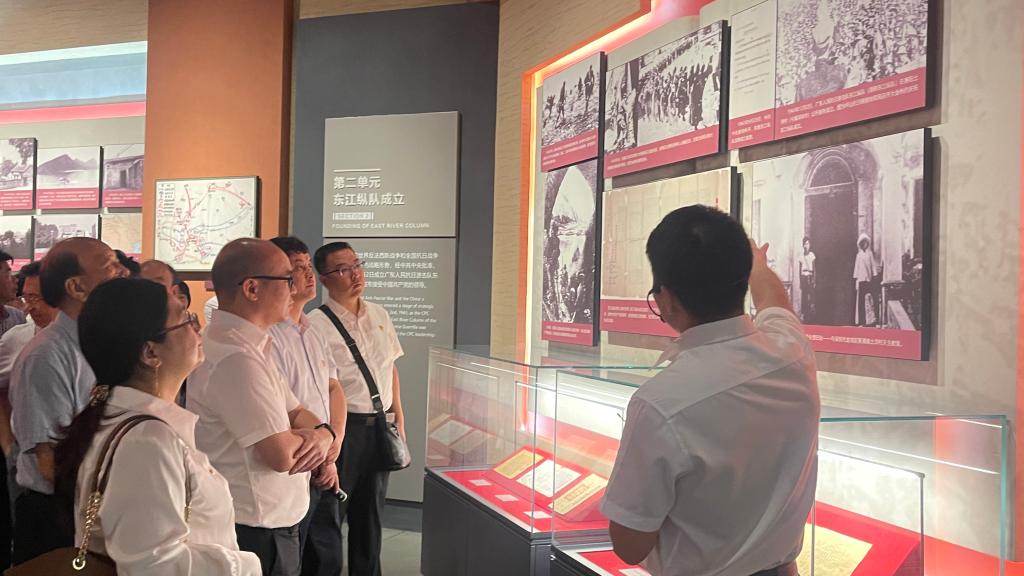 在大岭山东江纵队纪念馆,在讲解员的带领下,全体党员看着一幅幅真实的历史照片、一件件具有重要意义的文物,通过详实的历史资料,重温东江纵队艰苦卓绝的斗争史,感受革命先辈们坚定的信仰和爱国精神,弘扬革命传统,强化党性修养。